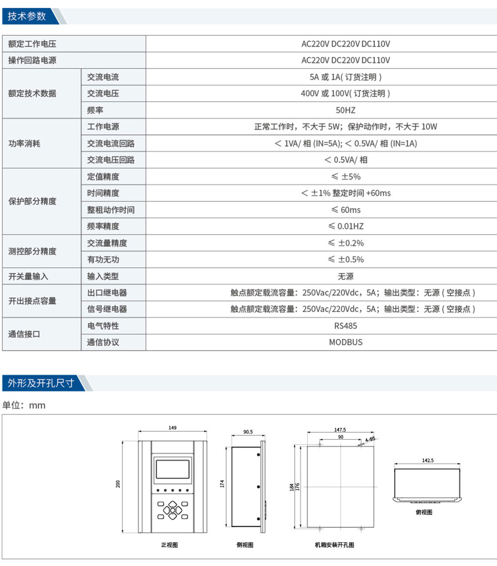 PNF-905AR系列微机保护测控装置是专门针对于箱变、环网柜、小型开关柜等系统应用而开发,可以集成于断路器或负荷开关+熔断器柜中使用。具有多种动作特性曲线的相电流保护、零序过流保护及外部接点直接跳闸功能,可应用于母线、线路、配电变压器、电动机、电容器等保护场合。